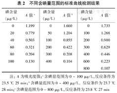 | 碘含量(μg/L) | A值a | 碘含量(μg/L) | A值b | 碘含量(μg/L) | A值c |