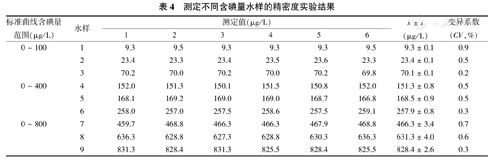 3种碘标准曲线范围内样品检测CV值均< 1.0%,见表4。
