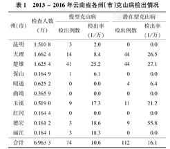 注:现症患者为截止2016年底,病区(县)既往的历史存活病例和2013-2016年新检出病例,已剔除重复病例数