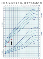 患儿男性,年龄3岁6个月,第1胎第1产,足月顺产,出生体重2 600 g,出生身长49 cm。生后无窒息。主因"发现身高增长缓慢3年"入院。1岁时身高73 cm,2岁时身高80 cm,3岁身高87 cm。患儿3个月会抬头,6个月会坐,8个月会爬,1岁会走,会叫爸爸妈妈。2岁行倒睫手术。家族史:否认家族遗传病史。父母体健,无特殊面容。父亲身高182 cm,30岁,母亲身高164 cm,32岁,16岁月经初潮。