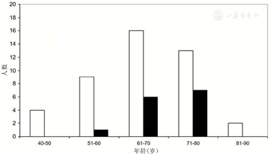 伴或不伴肾上腺意外瘤的患者比较见表2。伴肾上腺意外瘤的患者BMI更高(P=0.009)、腰围更大(P=0.007),糖尿病更多(31.8%对14.2%,P=0.003 8)。2组间的年龄分布无显著差异[(69.9±7.10)对(63.6±11.0)岁,图2]。在多变量回归分析中,糖尿病与肾上腺意外瘤存在显著相关性(P=0.003,表3)。40例患者接受1 mg过夜地塞米松抑制试验,其中20例(50%)的血皮质醇不能被抑制到<50 nmol/L, 4例DST后皮质醇>138 nmol/L。