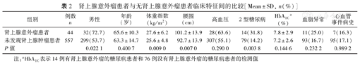 肾上腺意外瘤患者与无肾上腺意外瘤患者临床特征间的比较[Mean±SD, n(%)]