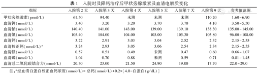 入院时及降钙治疗后甲状旁腺激素及血清电解质变化