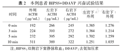 | 时间 | 外周ACTH(pg/mL) | 左岩下ACTH(pg/mL) | 右岩下ACTH(pg/mL) | 左岩下∶外周 | 右岩下∶外周 |