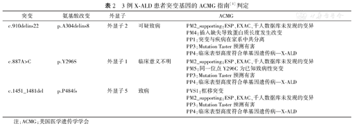 3例X-ALD患者突变基因的ACMG指南[1]判定