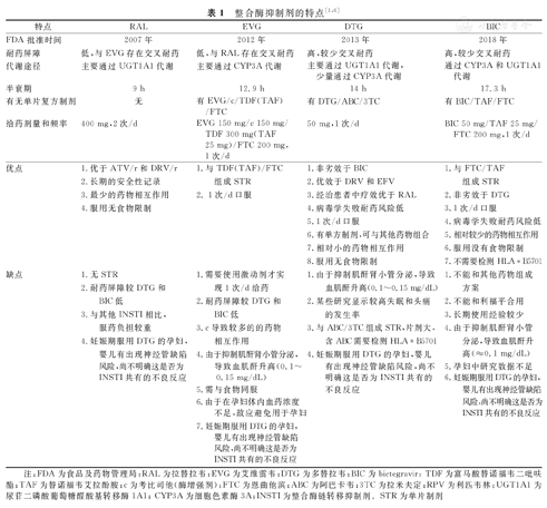 注:FDA为食品及药物管理局;RAL为拉替拉韦;EVG为艾维雷韦;DTG为多替拉韦;BIC为bictegravir; TDF为富马酸替诺福韦二吡呋酯;TAF为替诺福韦艾拉酚胺;c为考比司他(酶增强剂);FTC为恩曲他滨;ABC为阿巴卡韦;3TC为拉米夫定;RPV为利匹韦林;UGT1A1为尿苷二磷酸葡萄糖醛酸基转移酶1A1; CYP3A为细胞色素酶3A;INSTI为整合酶链转移抑制剂。STR为单片制剂