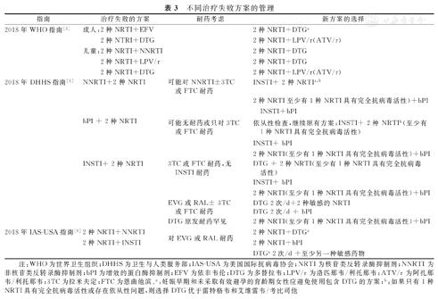 | 2018年DHHS指南[4] | NNRTI+2种NRTI | 可能对NNRTI±3TC或FTC耐药 | INSTI+ 2种NRTIa,b |