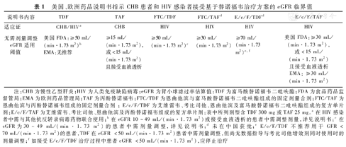 美国、欧洲药品说明书指示CHB患者和HIV感染者接受基于替诺福韦治疗方案的eGFR临界值
