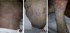 挪威疥误诊率极高,提示医务人员发现免疫功能低下或免疫抑制患者出现红皮病样改变,附着大量鳞屑、脓痂时,应考虑挪威疥的可能。曾有挪威疥患者因未能及时诊治而引起医务人员及其他住院患者感染疥疮的报道[9],因此,及时准确地诊治挪威疥具有重要意义。