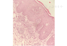 患者女,49岁,因"全身皮肤泛发红斑、丘疹,伴瘙痒1个月"于2013年12月31日入漳州市医院。患者曾就诊于外院,诊断为"毛发红糠疹、红皮病",予阿维A 20 mg/d、复方倍他米松、环孢素、卤米松乳膏等对症治疗10 d,皮肤损伤范围较前扩大、加重,鳞屑较前增多、变厚,并出现发热,最高体温达39.5 ℃。患者既往外院诊断结缔组织病6年余,其间不规则诊治,长期使用复方倍他米松注射液、泼尼龙、羟氯喹、雷公藤等药物治疗1~2年(具体不详),皮疹偶有改善,仍感四肢反复乏力。后于漳州市医院皮肤科就诊,体格检查:头皮弥漫黄色痂屑,颈部、躯干部、双上肢和双大腿皮肤弥漫潮红、肿胀,覆有厚层黏着性鳞屑及棕黄色厚痂,不易脱落,面部、双小腿、双足可见多发红斑、丘疹、丘疱疹,抓痕明显,可见糜烂面,有异臭味(图1)。实验室检查:白细胞计数为18.64×109/L,血红蛋白为125 g/L,血小板计数为44×109/L,嗜酸粒细胞计数为3.12×109/L;抗核抗体为174 IU/mL,抗Sm抗体(+),抗Ro-52抗体(++),余均阴性;总IgE为301 IU/mL;肌酶谱无异常。肌电图示双侧胫神经传导速度减慢。臀部组织病理检查示:表皮角化不全,部分颗粒层消失,棘层增厚,海绵水肿,灶性表皮层内及真皮乳头层较多嗜酸性粒细胞,少量淋巴细胞浸润;真皮浅层小血管周大量淋巴细胞、浆细胞和嗜酸性粒细胞浸润,少数淋巴细胞核增大、不规则,部分可见核仁(图2)。免疫组织化学检查:CD138少数阳性,CD20部分阳性,CD3阳性,CD4(+/-),CD79a部分阳性,CD8阳性,Ki-67阳性。入院后予甲泼尼龙40 mg/d及二代头孢菌素抗感染,治疗3 d后体温降至正常,但皮疹未消退。持续治疗1周后,皮疹仍未消退,光学显微镜下检查发现大量疥螨(图3),故诊断为"挪威疥"。立即予床边隔离并彻底消毒,予10%硫磺软膏、林旦乳膏治疗,1周后皮疹明显消退后出院。住院期间,患者的丈夫出现类似皮疹,与患者同时治疗后皮疹消退。随访过程中,患者皮肤损伤无复发。患者出院后1个月,出现面部蝶形红斑,光敏性,头发脱落增多,结合住院期间实验室检查中血小板计数为44×109/L,抗核抗体阳性,抗Sm抗体阳性,根据美国风湿学会1982年修订的标准,明确诊断"系统性红斑狼疮",故再次就诊福建省漳州市医院做进一步治疗,未再出现上述皮疹。