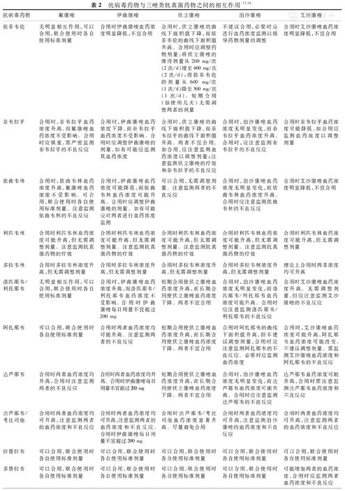 | 多替拉韦 | 可以合用,联合使用时各自使用标准剂量 | 可以合用,联合使用时各自使用标准剂量 | 可以合用,联合使用时各自使用标准剂量 | 可以合用,联合使用时各自使用标准剂量 | 可能增加两者的血药浓度,合用时应监测两者血药浓度和不良反应 |
