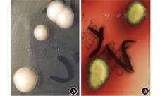 患者男,28岁,因"发热、咳嗽10 d余,HIV抗体初筛阳性5 d"于2018年5月8日入院。患者入院前10 d余开始发热,峰值达40.0 ℃,间歇发热,伴有咳嗽;至当地医院就诊查胸部X线片,提示肺炎;实验室检查示:CRP值为55.4 mg/L,ESR值为104.0 mm/1 h,ALT水平为100.0 U/L,AST水平为112.0 U/L,白蛋白值为30.3 g/L,遂予降温、抗细菌感染、抗病毒感染、止咳祛痰等对症支持治疗(具体不详);治疗后咳嗽好转,仍发热,后因HIV抗体检测呈阳性,转至南通市第三人民医院传染科就诊。入院体格检查:体温为36.5 ℃,心率为76次/min,呼吸频率为16次/min,血压为102/64 mmHg(1 mmHg=0.133 kPa);患者神志清,精神一般;头面、躯干、四肢有散在暗红色斑疹、丘疹,部分丘疹呈脐窝状,未触及明显肿大淋巴结;口腔黏膜见白斑;胸部、腹部体格检查未见明显异常;患者双侧病理征呈阴性。入院诊断:艾滋病、肺部感染、口腔念珠菌感染、肝功能损伤、低白蛋白血症。入院后予哌拉西林钠他唑巴坦钠(4.5 g/次,1次/8 h)联合莫西沙星(0.4 g/次,1次/d)静脉滴注抗细菌感染,复方磺胺甲口恶唑(4.32 g/次,3次/d)口服抗肺孢子菌感染,制霉菌素片(100万单位/次,3次/d)口服抗口腔念珠菌感染,氟康唑(0.4 g/次,1次/d)静脉滴注抗真菌感染,复方甘草酸苷(80.0 mg/次,1次/d)静脉滴注保护肝功能,人血白蛋白(10.0 g/次,1次/d)静脉滴注维持营养等治疗。入院2 h后患者体温升至39.7 ℃,实验室检查示:白细胞计数为1.16×109/L,中性粒细胞比例为0.94,中性粒细胞计数为1.09×109/L;PT为13.30 s,纤维蛋白原水平为3.58 g/L,D-二聚体为29.10 mg/L。遂予低分子肝素钙(4 100.0 IU/次,1次/12 h)皮下注射抗凝,重组人粒细胞刺激因子(150.0 μg/次,1次/d)皮下注射以升高白细胞水平。患者病程期间仍持续高热,峰值为39.5 ℃。实验室检查示:白细胞计数为0.70×109/L,血红蛋白值为92.00 g/L,血小板计数为87.00×109/L,中性粒细胞计数为0.55×109/L;PT值为14.00 s,INR值为1.20,纤维蛋白原水平为2.66 g/L,D-二聚体为56.91 mg/L;CRP值为151.00 mg/L;ESR值为25.00 mm/1 h;血清真菌特异性细胞壁成分(1,3)-β-D-葡聚糖检测结果为0.17 ng/L;梅毒螺旋体抗体检测呈阳性,非螺旋梅毒抗原试验比值为1∶8,结果呈阳性;HIV RNA定量为5.72×105 IU/mL;CD4 +T淋巴细胞计数为1/μL,CD8+T淋巴细胞计数为12/μL,自然杀伤细胞计数为3/μL;CMV DNA定量为1.41×103拷贝/mL;EB病毒DNA定量为3.48×105拷贝/mL;痰涂片未找到真菌、霉菌孢子;痰涂片未找到抗酸杆菌;痰涂片未找到革兰阴性杆菌,找到革兰阳性球菌;痰培养呈阴性;曲霉菌半乳甘聚糖抗原检测呈阴性;T-SPOT.TB检测呈阴性。心电图检查示:窦性心动过速。全腹部CT检查示:胆囊占位,腹腔及腹膜后多发轻度肿大淋巴结,考虑淋巴瘤;肝脏多发血管瘤;脾脏肿大;盆腔积液;右侧胸腔及心包少量积液。胸部CT检查示:两肺多发小结节,右侧颈根部、纵隔及两肺门多发肿大淋巴结,提示淋巴瘤;两肺炎症;心包少量积液,心包囊肿;腹腔及腹膜后轻度肿大淋巴结。入院第3天改哌拉西林钠他唑巴坦钠为亚胺培南西司他丁钠(1.0 g/次,1次/ 8 h)静脉滴注抗感染治疗,改氟康唑为伏立康唑)(用药第1天,伏立康唑剂量为400.0 mg/次,1次/12 h,之后为200.0 mg/次,1次/12 h)口服抗真菌治疗,并加用更昔洛韦(0.25 g/次,1次/ 12 h)联合膦甲酸钠(3.0 g/次,1次/12 h)静脉滴注抗病毒治疗,重组人粒细胞刺激因子(150 μg/次,2次/d)皮下注射升高白细胞计数。入院第4天患者体温下降,峰值为37.8 ℃。复查实验室检查示:白细胞计数为0.85×109/L,血红蛋白值为94.00 g/L,血小板计数为45.00×109/L,中性粒细胞计数为0.71×109/L;PT值为13.80 s,纤维蛋白原水平为1.42 g/L,D-二聚体水平为83.38 mg/L;血清铁蛋白值>2.00 μg/L;网织红细胞百分比为0.43%。考虑噬血细胞综合征(hemophagocytic syndrome,HPS)可能,予免疫球蛋白(20.0 g/次,1次/d)联合甲泼尼龙琥珀酸钠(40.0 mg/次,1次/8 h)静脉滴注冲击治疗7 d,入院第5天患者体温恢复正常。病程中行骨髓穿刺术、骨髓涂片检查。瑞氏-吉姆萨染色结果(图1A)示:有核细胞增生尚活跃,粒系、红系细胞计数比为0.85∶1;粒细胞增生减低,胞体偏大;红系细胞增生活跃,未见明显异常;全片见巨核细胞19个,血小板成簇可见;组织细胞占17.5%,可见双核细胞,易见吞噬性组织细胞;可见疑似被细胞吞噬的成簇菌体或原虫。过碘酸希夫反应染色检查结果(图1B)示:吞噬性组织细胞增多;考虑马尔尼菲篮状菌(talaromyces marneffei,TM)感染可能,原虫感染不排除,建议骨髓培养。血培养检查提示TM感染(图2)。根据患者症状、体征和上述检查结果,考虑患者"HPS、TM感染"诊断明确;遂停用伏立康唑,改为两性霉素B(25.0 mg/次,1次/d)静脉滴注抗真菌治疗。病情缓解后甲泼尼龙琥珀酸钠逐渐减量,予苄星青霉素(240.0万单位/次,每周1次)肌内注射抗梅毒感染治疗(连用3周)。在南通市CDC确诊该患者HIV-1抗体呈阳性后,遂予HAART至今,即口服拉米夫定(300.0 mg/次,1次/d)、替诺福韦(300.0 mg/次,1次/d)、依非韦伦(600.0 mg/次,每晚1次);两性霉素B使用2周后停用,改为伊曲康唑(20.0 mL/次,2次/d)口服抗真菌治疗。复查血常规、生物化学指标、凝血功能指标、CMV DNA定量、血培养指标,行骨髓涂片检查、骨髓培养检查,均未见异常;胸部CT检查示肺部炎症明显吸收;腹部CT检查提示胆囊占位进展,腹腔及腹膜后多发肿大淋巴结,考虑淋巴瘤可能;请外科会诊后建议行腹腔镜胆囊切除术,并且术中行活组织病理检查了解淋巴瘤分型和分级,患者拒绝行手术并要求出院,出院后予嘱继续口服伊曲