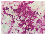 注:黑色箭头所指为嗜沫凝聚杆菌的形态