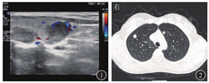 本研究报道1例因双肺多发占位入院的患者,超声检查示甲状腺双侧叶实性结节,右侧叶囊实性结节;胸部计算机断层成像检查示甲状腺双叶低密度结节,双肺多发结节;结核感染T淋巴细胞斑点试验示抗原A(早期分泌抗原靶-6)孔斑点数为56个,抗原B(培养滤液蛋白10)孔斑点数为50个。行超声引导下甲状腺结节穿刺细针吸取细胞学检查,结合病理及临床病史,基本可诊断为肺结核合并甲状腺结核。经抗结核治疗,患者病情好转。本病例提示超声引导下细针吸取细胞学检查为甲状腺疾病的临床诊断提供了新思路,值得临床应用推广。