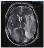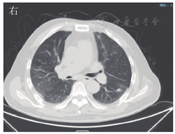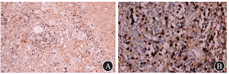 患者男,63岁,因"间断发热1年"于2020年6月29日入河南大学人民医院。患者1年前无明显诱因下出现发热,体温最高达38.0 ℃,伴有反应迟钝、吞咽困难、饮水呛咳、颈部硬肿,无咳嗽、咳痰,无胸闷、呼吸困难。患者于外院查血常规示感染相关指标高,CT检查示颅内感染可能(具体不详),予"美罗培南、万古霉素"抗感染治疗,体温可降至正常,但很快反复;后多次因"颅内感染"住院,予抗感染治疗,疗效差。4月余前因颅内高压、脑积水于外院行脑室-腹腔分流术。3月21日外院头颅MRI检查示左侧枕部颅板下积液、左侧颞枕顶叶明显水肿,增强后明显强化;颅脑术后改变。5月21日肺部CT检查示双肺多发结节影、条索影,考虑慢性炎症。为求进一步诊治来河南大学人民医院,门诊以"发热待查:颅内感染?脑室-腹腔分流术后"收入感染科。患者自发病来,神志欠清,精神差,食欲及睡眠可,二便正常,体质量较前无明显减轻。既往史:2003年因颈椎破坏行植骨术;2013年因"发热伴头痛"发现颅内病变,曾就诊于多家医院均未明确诊断,病情缓慢进展;2018年因"头痛加重"行颅内病变切除术,术后考虑感染性病变,间断抗感染治疗,病情仍无改善。体格检查:体温为36.8 ℃,脉搏为88次/min,呼吸为20次/min,血压为135/85 mmHg(1 mmHg=0.133 kPa)。神志欠清,反应迟钝,对答欠切题,计算力下降。双侧额纹变浅,闭目力差,双侧鼓腮力、咀嚼力差;伸舌困难,舌不能完全伸出;双侧瞳孔等大等圆,眼球活动度差,尤其上视、右视时明显,对光反射迟钝,视力下降;颈部红肿、僵硬,无压痛;双肺听诊呼吸音清,未闻及干、湿啰音;心前区无隆起,心界不大,律齐,各瓣膜听诊区未闻及心脏杂音及心包摩擦音;腹部平软,无压痛,肝脾肋下未及,移动性浊音阴性,肠鸣音正常;双下肢无水肿,肌力3级,腱反射(-),病理征(+)。考虑为免疫性疾病,予补液、营养支持等对症治疗。实验室检查:IgG为37 910 mg/L,抗髓过氧化物酶抗体为24.21 RU/mL,IgE为208.3 IU/mL,IgG4为10 400 mg/L;IL-6为115.88 ng/L;ESR为106 mm/1 h;CRP为146.36 mg/L;降钙素原为0.12 μg/L;血常规、尿常规、粪便常规、游离三碘甲腺原氨酸、游离甲状腺素、促甲状腺激素、T.SPOT.TB检测、β-D-葡聚糖试验、半乳甘露聚糖抗原试验、EB病毒DNA、CMV DNA、布鲁菌抗体、肿瘤标志物均阴性。6月30日胸部CT检查示双肺多发结节,见图1。7月2日头颅MRI平扫+增强检查示脑内多发异常信号影;后纵裂池处脑膜、小脑幕及左侧颞部硬脑膜增厚并明显强化;左侧枕叶局部脑穿通畸形形成,见图2。进一步行腰椎穿刺脑脊液检查示单核细胞计数为66×106/L,蛋白质为6.02 g/L,葡萄糖为2.02 mmol/L,氯化物为119.9 mmol/L。考虑为IgG4相关疾病(immunoglobulin-G4 related disease,IgG4-RD)。7月2日请病理科会诊外院术中脑组织病理切片,结果示(左枕)纤维组织增生伴玻璃样变性,局部胶原化,淋巴袖套结构可见,血管周围及硬化间质内见较多淋巴细胞及浆细胞浸润,浆细胞形态成熟,见图3;免疫组织化学染色示纤维及血管周边可见多量IgG4+浆细胞浸润,IgG4+浆细胞约为50~100个/高倍视野,见图4。根据患者检查结果和多科室专家会诊,诊断为IgG4-RD,累及中枢、肺部、皮肤、骨骼。由于患者病变侵犯脑干,有脑水肿、颅内压升高等表现,可能出现呼吸、心跳骤停等严重并发症,与患者家属沟通患者病情。7月10日开始予甲泼尼龙(500 mg,1次/d,静脉滴注)冲击联合丙种球蛋白(20 g,1次/d,静脉滴注)治疗。当天患者眼球转动基本正常,进食无呛咳,意识、反应和言语明显好转,颈部硬肿好转。予静脉滴注甲泼尼龙500 mg 3 d、240 mg 3 d、120 mg 3 d、80 mg 3 d、40 mg 3 d,以及静脉滴注丙种球蛋白20 g (1次/d) 5 d,患者症状明显改善,复查IgG、IgG4、ESR、CRP均较前下降。7月13日肺部CT检查示双肺结节明显缩小,见图5。7月19日头颅MRI检查示颅内局部脑水肿减轻,后纵裂池处脑膜、小脑幕及左侧颞部硬脑膜病变缩小,见图6。患者症状逐渐好转,7月24日患者及家属要求出院。出院后继续予甲泼尼龙治疗,后联合吗替麦考酚酯,患者一般情况稳定,定向力、记忆力、认知力正常,言语流利。