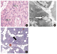长期饮酒后,乙醇在胰腺的代谢以非氧化代谢途径为主,通过上调胰腺固醇调节元件结合蛋白(sterol regulatory element-binding protein,SREBP)-1c、增加脂肪酸合成酶(fatty acid synthase,FAS)的表达,下调过氧化物酶体增殖体激活受体γ协同刺激因子-1α使胰腺脂肪酸合成增加、氧化减弱,胰腺游离脂肪酸(free fatty acid,FFA)含量和TG增加,促进脂质沉积[1,2]。此外,还可通过上调胰腺二酰基甘油酰基转移酶2(diacylgycerol aeyltransferase 2,DGAT2)的表达,增加TG合成;胰腺脂联素信号通路受抑也参与了这个过程[2]。单纯长期饮酒导致炎性反应的氧化代谢途径通常不被激活[1]。因此,在慢性饮酒者中,只有不到10%的酗酒者最终可发展为慢性胰腺炎。动物实验发现,单独使用乙醇并不能成功诱导具有慢性胰腺炎组织病理特点的动物模型[1]。