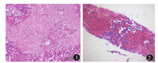 PA-HSOS动物模型的病理改变研究较为详细,而人体病理资料较少。大鼠模型的病理改变包括:最先出现肝血窦内皮细胞超微结构受损,而后肝血窦堵塞的表现逐渐明显,内皮细胞损伤,窦壁破坏;其中,肝腺泡Ⅲ区血窦淤血、肝板结构破坏、肝细胞坏死、小叶间静脉内皮细胞损伤,以及管壁肿胀最为显著[17,23](图1)。造模第6天,一些大鼠肝脏病变恢复接近正常,另一些大鼠肝细胞受损改善,但血窦内、窦周和小叶间静脉内仍有大量胶原蛋白沉积。人PA-HSOS的病理改变与大鼠模型表现高度相似:典型表现为以肝腺泡Ⅲ区为主的肝窦内皮细胞肿胀、损伤、脱落,肝窦显著扩张充血;肝细胞不同程度的肿胀、坏死,红细胞渗入狄氏间隙,肝内小静脉管壁增厚,管腔狭窄、闭塞,无纤维化表现或可见汇管区轻度纤维增生[8,24,25,26,27](图2)。