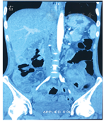 血常规白细胞计数为10.07×109/L,中性粒细胞占0.827,血红蛋白为102 g/L,血小板计数为172×109/L。粪便常规为粪便呈黄色,微稀,粪便隐血试验阳性。白蛋白为30.9 g/L,ESR为51 mm/1 h,超敏CRP为36.1 mg/L,自身抗体系列1∶100阳性,免疫球蛋白及补体系列正常,抗中性粒细胞胞质抗体阴性。甲胎蛋白为9.06 μg/L,CA125为67.99 kU/L,癌胚抗原为1.01 μg/L。结核感染T细胞斑点试验(tuberculosis infection T cell spot test,T-SPOT):抗原A为63斑点形成细胞(spot forming cell,SFC)/2.5×105外周血单个核细胞(peripheral blood mononuclear cell,PBMC),抗原B为0 SFC/2.5×105 PBMC。痰涂片浓缩法检查未见抗酸杆菌。