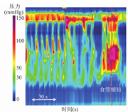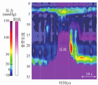 外科手术包括食管肌切开术、食管切除术和胃底折叠术等,对食管动力可造成明显影响。胃底折叠术后可改变患者胃食管交界处高压带的形态,表现为LES处高压带位置提高,胃底折叠处压力和松弛正常;若患者反流症状复发,则可表现为高压带位置提高,LES压力低下,但松弛正常,提示折叠松脱;若患者HRM提示高压带位置提高,LES张力高,不完全松弛则提示折叠扭曲;若折叠术后仍存在双高压带提示折叠的位置不恰当。贲门失弛缓症患者术后可出现远端高压带消失。
