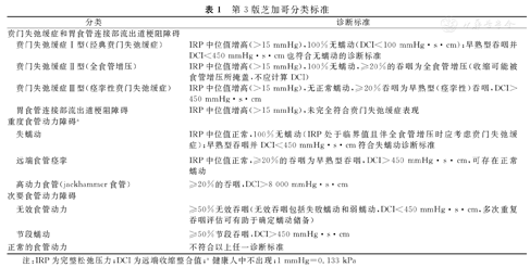 | 失蠕动 | IRP中位值正常,100%无蠕动(IRP处于临界值且伴全食管增压时应考虑贲门失弛缓症);早熟型吞咽并DCI<450 mmHg·s·cm符合失蠕动诊断标准 | |
