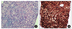 血液科林东主任医师(中国医学科学院北京协和医学院血液病医院会诊):按照结外型淋巴瘤的定义,原发性肝淋巴瘤是指病变局限于肝内,早期无淋巴结或肝外扩散的具有淋巴细胞标记的恶性肿瘤。淋巴瘤是起源于淋巴造血组织的一种实体肿瘤。结外型淋巴瘤可侵犯人体多个器官,其中以胃肠道、脾脏等较为多见,而原发于肝脏者较为少见,发病率仅占肝恶性肿瘤的0.1%,占结外型淋巴瘤的0.4%[7]。艾滋病与自身免疫病在该病的发生中有重要作用。其临床特征性表现有肝大,消化道症状如上腹部疼痛、呕吐、食欲减退等,淋巴瘤症状如发热、盗汗、体质量减轻等,其他少见的临床表现包括胸膜渗出、黄疸、血小板减少、代谢性酸中毒、高钙血症等。目前确诊仍需依靠超声检查或CT引导下肝穿刺活组织检查或手术活组织检查。本例患者临床表现无特异性,且无淋巴结肿大等表现,仅存在高热及肝区疼痛,临床医师能考虑到该病,并坚持2次肝穿刺明确诊断,实属不易。