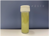 于2019年8月7日急诊行腹腔动脉造影+脾动脉瘤栓塞术(图3),术中经右侧股动脉穿刺置管后,引入5 F Corba导管行腹腔干造影,见脾动脉一条分支中段造影剂外漏,形成假性动脉瘤。经微导管超选择脾动脉出血分支,于破口远端和近端分别予6 mm×2 mm弹簧圈各2枚栓塞,复查造影栓塞满意。最后经Corba导管行腹腔干造影未见明显造影剂外渗,弹簧圈均在位。术后静脉滴注奥美拉唑40 mg(1次/d)抑酸护胃,加贝酯300 mg(1次/d)静脉滴注抑制胰酶活性。患者全身营养状况显著改善后,于2020年10月13日行全身麻醉下胰管切开取石+胰管-空肠吻合+广泛肠粘连松解术,术中见胰腺组织明显萎缩,质地硬,胰尾和脾周致密粘连,胰体尾部假性囊肿与周围组织紧密粘连难以剥离,且易出血。于胰腺表面纵行切开至胰管,沿主胰管纵行切开约5 cm,取出其内结石。取距离十二指肠悬韧带远端约25 cm处空肠,经结肠后方,以可吸收缝线行胰管-空肠侧侧吻合。取距离胰肠吻合口远端约50 cm处空肠,与胰肠吻合口近端空肠行空肠-空肠侧侧吻合。丝线扎闭胰肠吻合口近端肠段,完成非离断式(uncut) Roux-en-Y吻合。2020年10月16日上腹部CT平扫加增强扫描检查(图4)可见胰腺头颈部和部分体部多发点状高密度影,胰腺尾部可见金属伪影,增强扫描无明显强化,周围见部分渗出。术后予以醋酸奥曲肽注射液抑制胰腺分泌,并行窦道造影后以0.9%氯化钠溶液反复冲洗引流管,2周后患者引流液明显减少,无发热、畏寒等不适,予以出院。患者出院后定期复查,胰腺假性囊肿持续置管引流,每日引流约20 mL淡黄色透明液体。2021年3月28日起患者胰腺假性囊肿引流液呈乳糜样(图5),每日引流量为20~30 mL,无畏寒、发热。