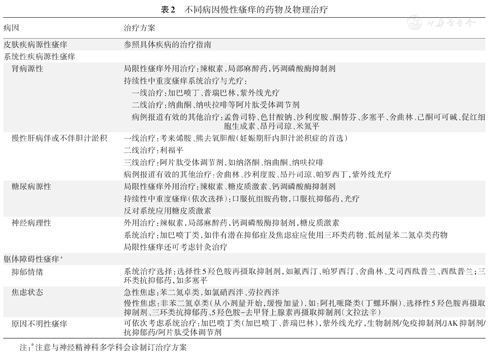 不同原因引起慢性瘙痒的治疗见表2。