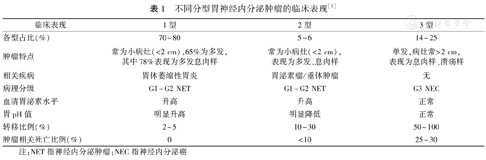 不同分型胃神经内分泌肿瘤的临床表现[1]