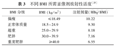 不同BMI所需显像剂放射性活度[25]