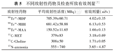| 放射性药物 | 平均放射性活度(MBq) | 有效剂量(mSv) |