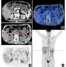 本例在影像学方面与炎性肠病较难鉴别。PET/CT图像表现为结直肠多处肠壁增厚,FDG代谢轻度增高,SUVmax为3.2~6.4。其中CT表现并不具有特异性,炎性肠病中亦有肠壁增厚、黏膜强化等CT表现。PET代谢特点方面,Groshar等[7]报道,活动期克罗恩病可见病变肠壁FDG代谢增高,病变肠道SUVmax为5.0±2.5,且代谢高低与炎性病变程度及活动程度相关;而溃疡性结肠炎亦有相似报道[8]。本例病灶SUVmax与上述文献报道的炎性肠病FDG代谢程度相似,CT表现亦无特异性,是误诊为炎性肠病的主要原因。Ciarallo等[9]也曾有类似报道。尽管PET/CT较难鉴别炎性肠病及EATL,但其在明确肠道病变范围方面具有明显优势[9]。