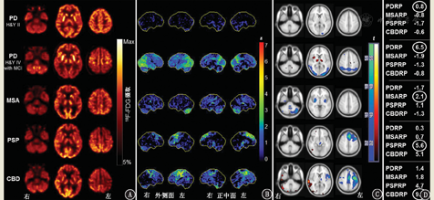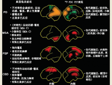最后,CBD的脑葡萄糖代谢特点表现为运动症状较为严重的肢体对侧额顶叶区、纹状体和丘脑代谢的不对称性减低。其中顶叶皮质的低代谢较为明显,并且通常从感觉运动皮质逐渐累及扣带回和前运动前额叶区。