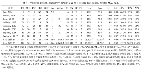 18F-脱氧葡萄糖(FDG)PET鉴别帕金森综合征的现有研究概况及初步Meta分析