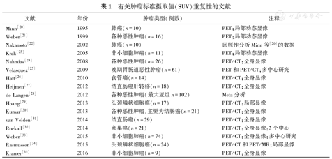 有关肿瘤标准摄取值(SUV)重复性的文献