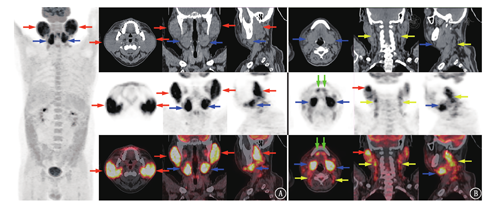 总之,PET/CT的诊断既要仔细分析显像结果,又要紧密结合患者的病史及实验室检查。当病变位于头颈部并累及涎腺及淋巴结、病灶FDG代谢明显升高、血液学检查伴有嗜酸性粒细胞及IgE升高时,要考虑木村病的可能性。