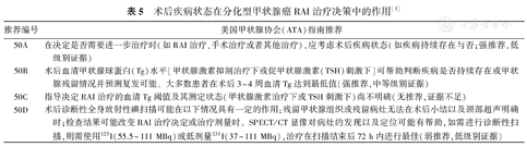 | 50A | 在决定是否需要进一步治疗时(如RAI治疗、手术治疗或者其他治疗),应考虑术后疾病状态(如疾病持续存在与否;强推荐,低级别证据) |
