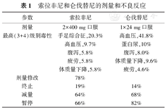 | 最高(3+4)级别毒性 | 手足综合征,20.3% | 高血压,41.8% |