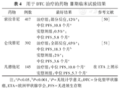 多个应用TKIs对RAIR晚期DTC进行治疗的Ⅱ、Ⅲ期临床试验已经进行。Ⅲ期临床试验的结果见表4。