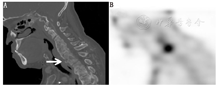放射性核素显像可辅助MRI用于脊柱骨髓炎的诊断。虽然骨显像已被用于脊柱骨髓炎的筛查,但常出现假阴性。骨显像在探查脊柱感染伴随的软组织感染方面灵敏度低。在感染痊愈后,骨显像在一段时间内可能仍为阳性。67Ga显像的特异性比骨显像高,还可能比骨显像更快发现感染的骨病灶及伴随的软组织感染[3,17,18]。67Ga SPECT/CT显像可降低假阳性率和假阴性率,并能探查到软组织感染[3]。