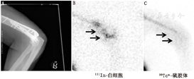 白细胞介素8是一种可与白细胞上的α-趋化因子受体1和2结合的趋化因子,可在感染病灶中迅速浓聚。少数研究表明,该显像剂可对肌肉骨骼感染进行准确诊断[7]。