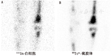 99Tcm标记白细胞的生物分布多变,因为部分Tc会从白细胞中洗脱出来,并通过肾脏和肝胆系统排出体外。因此,显像过程中除了可看到网状内皮系统显影,通常还可看到尿路、肠道和胆囊显影。99Tcm标记白细胞显像的优点包括图像分辨率较高和注射后不久即可进行显像。缺点包括标记的不稳定性和99Tcm半衰期短导致无法进行延迟显像。99Tcm标记白细胞显像与骨髓显像间需间隔2~3 d[4]。
