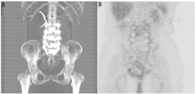 18F-FDG可能不太适用于以下情况。18F-FDG可能难以鉴别肿瘤与感染或肿瘤伴发感染。退行性脊柱疾病偶尔会出现局灶性18F-FDG的高摄取[3]。脊柱植入物周围的异物反应也可能导致18F-FDG摄取增加(图4)[32]。尽管已发表的研究均支持18F-FDG显像用于脊柱骨髓炎的诊断,但尚需更多研究论证其是否可作为脊柱骨髓炎的首选检查。