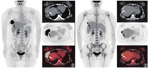 本例患者为哺乳期成年女性,临床表现为胸壁外无痛性肿块,短期内进行性增大,超声引导下穿刺病理提示E-EWS,18F-FDG PET/CT显像示右侧胸壁糖代谢异常增高的肿块,局部突入胸腔,边缘尚光整,密度均匀,毗邻肋骨骨质密度增高。与E-EWS的鉴别诊断主要有胸壁淋巴瘤、胚胎性横纹肌肉瘤等,18F-FDG PET/CT显像较难鉴别,主要依赖免疫组织化学检查,SMA(-)、Des(-)及LCA(-)可以排除胸壁淋巴瘤、胚胎性横纹肌肉瘤的诊断。但18F-FDG PET/CT全身显像在确定临床分期、指导临床确定治疗方案中具有重要的价值。本例患者行18F-FDG PET/CT全身显像后诊断为E-EWS(T2N0M0G3,Ⅲ期)。由于肿块较大,并且E-EWS对化疗非常敏感,确定临床分期后立即行VAC/IE交替方案化疗,6个周期后复查18F-FDG PET/CT显像,发现右侧胸壁的肿块较前明显缩小,糖代谢明显减低,SUVmax从治疗前17.1下降到10.5,提示化疗有效。