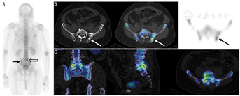 2.18F-fluoride PET/CT。1962年,18F-fluoride首次被应用为骨特异性显像剂。但因高能511 keV光子不适用于γ照相机显像,直到现代PET和PET/CT仪的出现,18F-fluoride才在临床大量应用。此外,99Tcm发生器的周期性短缺也导致了18F-fluoride功能骨显像应用增加。