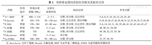 | 99Tcm-MDP | 骨 | 600~1 110 | 2~5 h | 分期、再分期、反应评价 | 5,6,8,9,16,18,23,24,25,26 |