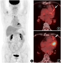 2.糖皮质激素使用的问题。糖皮质激素是大动脉炎/巨细胞动脉炎的标准治疗药物。由于糖皮质激素可能会降低血管壁的FDG摄取,并且增加肝脏的FDG摄取,应用糖皮质激素可能导致假阴性的判读结果,或低估血管炎的摄取程度。有研究发现,开始使用糖皮质激素3 d后,大血管壁的18F-FDG PET摄取明显降低,诊断灵敏度亦降低,而在使用糖皮质激素后3 d内,大血管壁的FDG摄取影响不大[4]。所以若要应用PET/CT评估大血管炎,应该尽早、并在应用糖皮质激素前进行检查,若已开始糖皮质激素治疗,在开始治疗的3 d内可能有一个诊断窗口期。