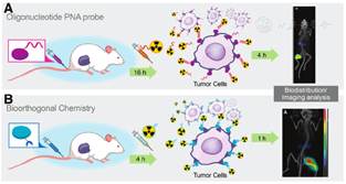 近期的生物正交反应-预靶向策略开发方面的研究集中于新型化学物质(如金刚烷/葫芦脲[145])、新型载体(如纳米粒子[146],更多细节可从近期的综述中获得[147]),以及放射性标记四嗪的持续优化[148]。生物正交反应-PRIT的临床试验正在进行中(NCT04106492),生物正交反应-PRID的临床试验也计划在近期开展[149]。