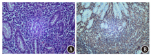 MALT淋巴瘤是发生于淋巴结外的1种低度恶性的B细胞淋巴瘤,胃是最常见的原发部位,占全部MALT淋巴瘤的40%[1]。胃MALT淋巴瘤患者临床上起病隐匿,发展缓慢,常见症状为非特异性消化不良,少数患者伴发热、盗汗,呕血黑便少见。其累及部位以胃体多见,其次胃窦;内镜下表现多样,可表现为慢性胃炎样型、溃疡型、黏膜隆起型、息肉或肿块型。