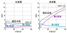 其次,示踪剂动力学分析为PET图像提供了更精确的解读。例如,对于18F-FDGPET,在注射后几个小时其在血液中的浓聚仍然显著。因此,注射后1 h的静态肿瘤图像同时反映了未代谢的18F-FDG和被肿瘤葡萄糖代谢捕获的18F-FDG-6-P的混合物(18F-FDG的生物靶点)。扫描仪检测到两者具有相同的正电子发射同位素,因此静态PET显像无法区分18F-FDG和18F-FDG-6-P。然而,动态显像和动力学分析可以用血液中放射性18F-FDG的时间进程和组织中总的18F-FDG和18F-FDG-6-P来推断细胞内18F-FDG-6-P积聚速率,并提供更特异的肿瘤葡萄糖代谢估计[12,13]。这种能力在临床和临床试验中具有重要意义,如可以用于评估治疗反应[14,15,16]。