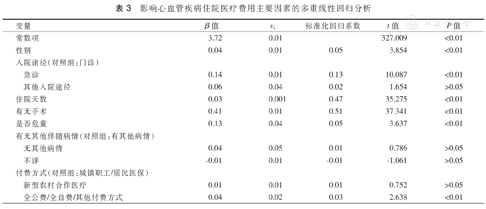 影响心血管疾病住院医疗费用主要因素的多重线性回归分析